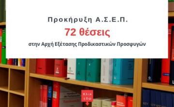Το Ανώτατο Συμβούλιο Επιλογής Προσωπικού προκηρύσσει την πλήρωση εβδομήντα δύο (72) θέσεων Ειδικού Επιστημονικού Προσωπικού με σύβαση εργασίας ιδιωτικού δικαίου αορίστου χρόνου, για την κάλυψη αναγκών της Αρχής Εξέτασης Προδικαστικών Προσφυγών (Α.Ε.Π.Π.).