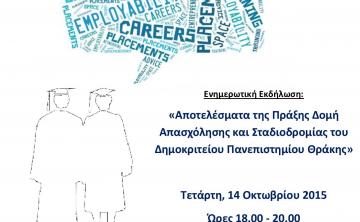 Αποτελέσματα της Πράξης Δομή Απασχόλησης και Σταδιοδρομίας του Δημοκριτείου Πανεπιστημίου Θράκης.